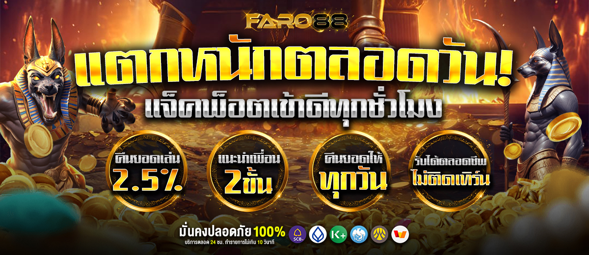 สำหรับใครที่กำลังมองหาแหล่งรวมเกมสล็อตคุณภาพดี เราขอแนะนำให้รู้จักกับ FARO88 เว็บพนันออนไลน์ที่รวบรวมเกมสล็อตจากค่ายดังระดับโลกมาให้เลือกเล่นมากมาย ไม่ว่าจะเป็น Pragmatic Play, PG Soft, Joker Gaming และอีกหลายค่ายชั้นนำ ที่การันตีด้วยคุณภาพและความสนุกแบบไม่มีที่ติ